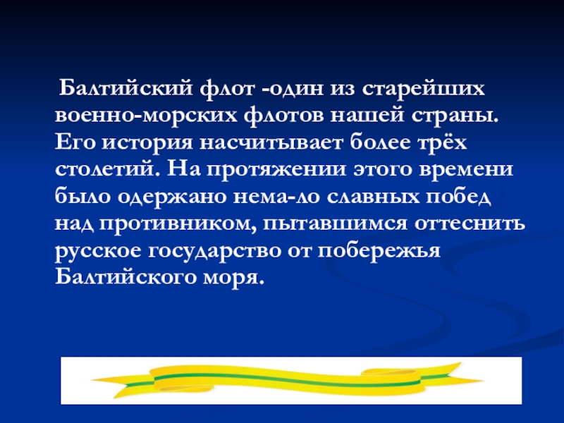 Слайд 4 Балтийский флот -один из старейших военно-морских флотов нашей страны.