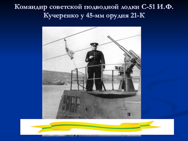 Слайд 60Командир советской подводной лодки С-51 И.Ф. Кучеренко у 45-мм орудия 21-К
