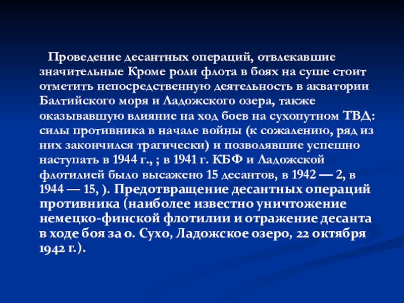 Слайд 40 Проведение десантных операций, отвлекавшие значительные Кроме роли