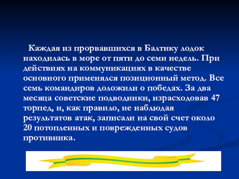 Слайд 44 Каждая из прорвавшихся в Балтику лодок находилась в