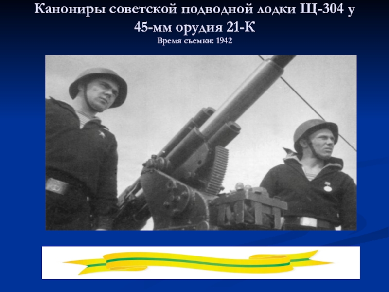 Слайд 59Канониры советской подводной лодки Щ-304 у 45-мм орудия 21-К