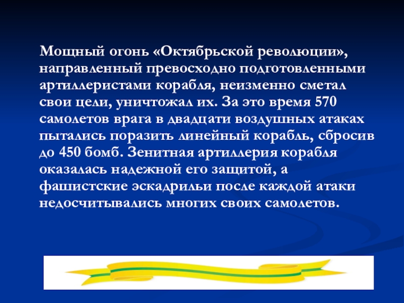 Слайд 58 Мощный огонь «Октябрьской революции», направленный превосходно подготовленными артиллеристами корабля,
