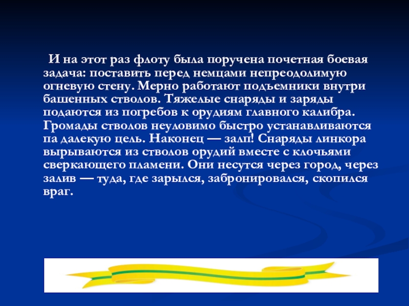 Но вот враг подошел уже совсем близко к городу Ленина. На его защиту вместе с армией встали корабли Балтийского флота.
