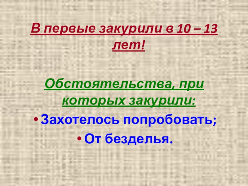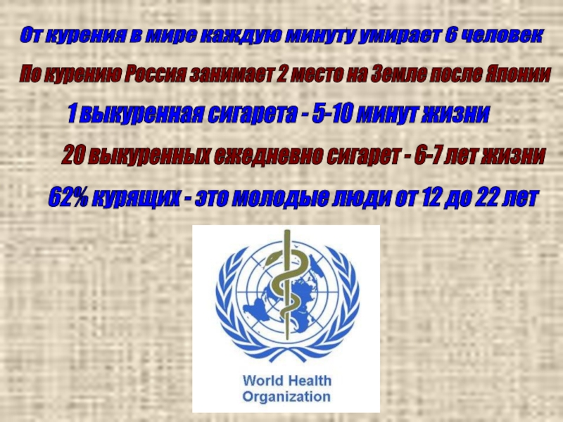62% курящих - это молодые люди от 12 до 22 лет