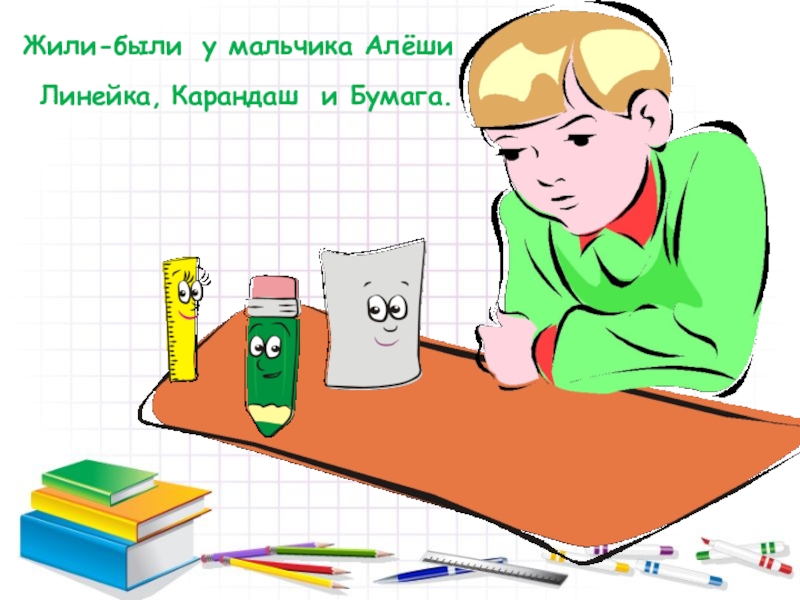 Жили-былиу мальчика Алёши Линейка, Карандаши Бумага.