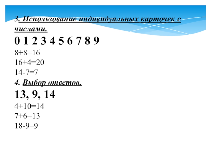 Слайд 53. Использование индивидуальных карточек с числами.
