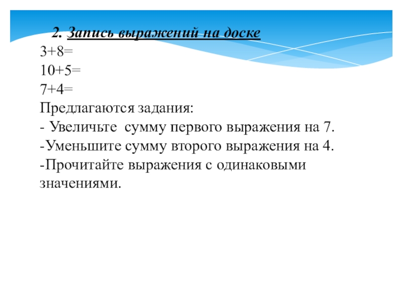 Слайд 4 2. Запись выражений на доске