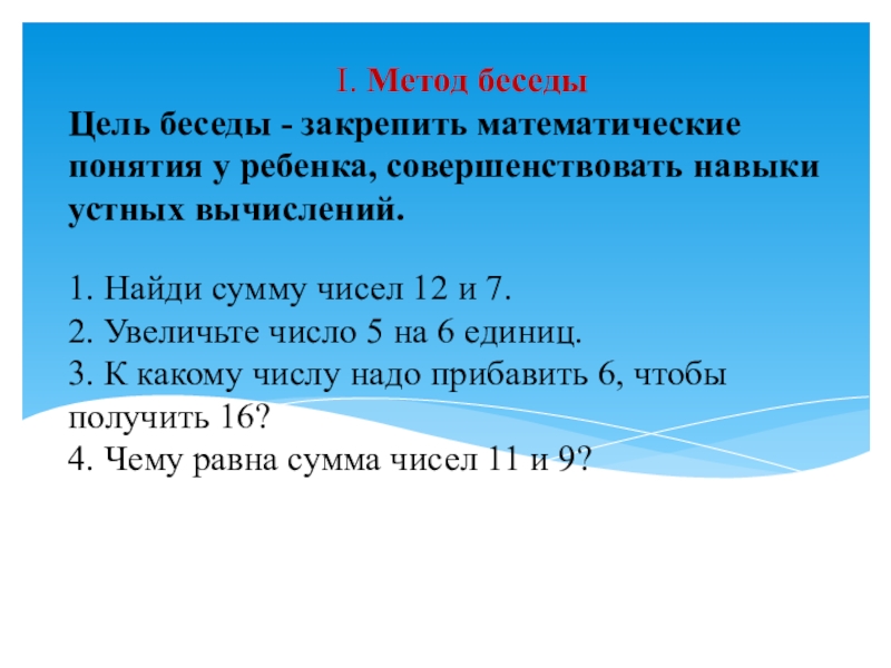 I. Метод беседы