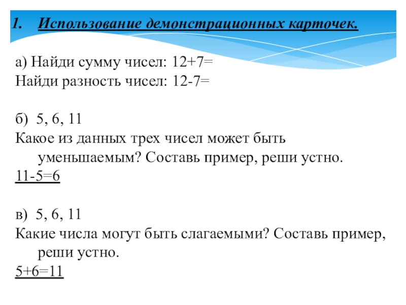 Слайд 3Использование демонстрационных карточек.