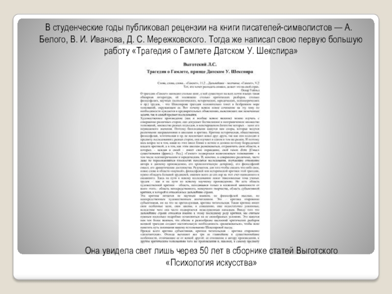 Она увидела свет лишь через 50 лет в сборнике статей Выготского «Психология искусства»
