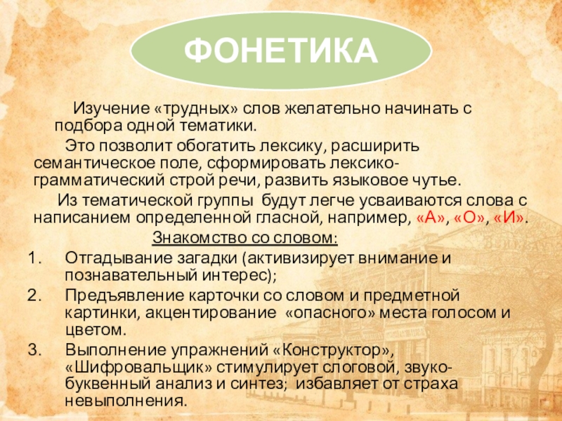 Слайд 5 Изучение «трудных» слов желательно начинать с
