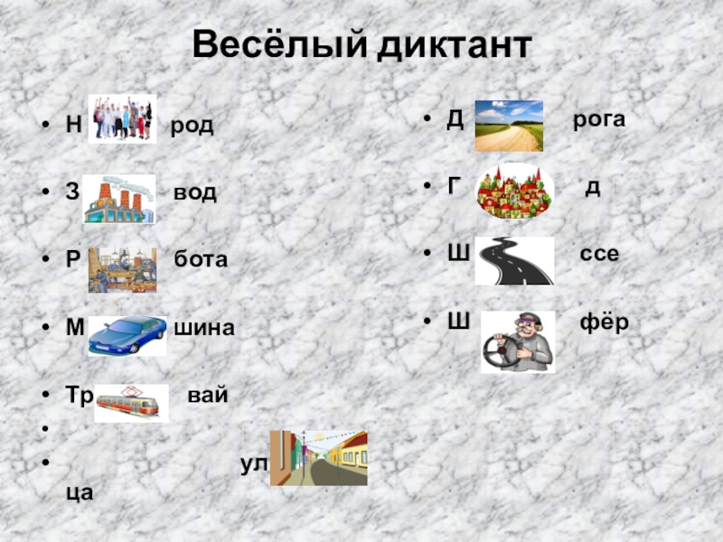 Написание необычных диктантов, в которых «опасное» место зашифровано картинкой;
