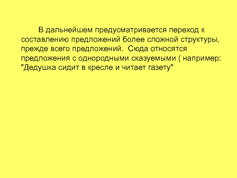 Слайд 14 В дальнейшем предусматривается переход к составлению предложений
