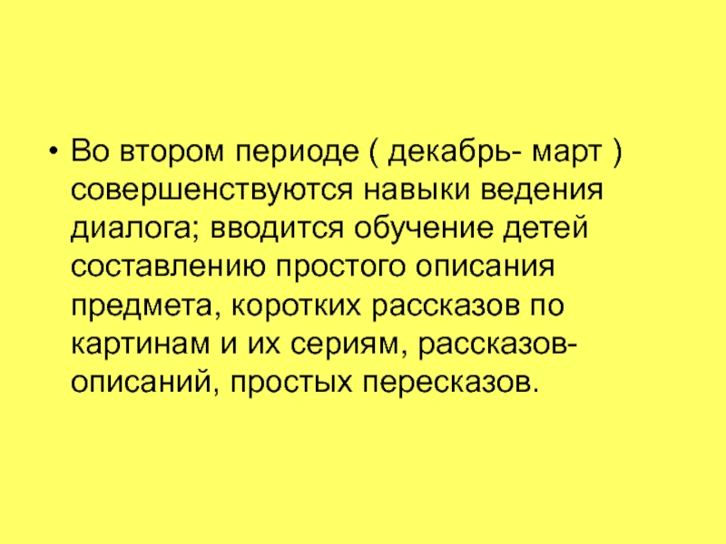 Слайд 7Во втором периоде ( декабрь- март ) совершенствуются навыки ведения диалога;