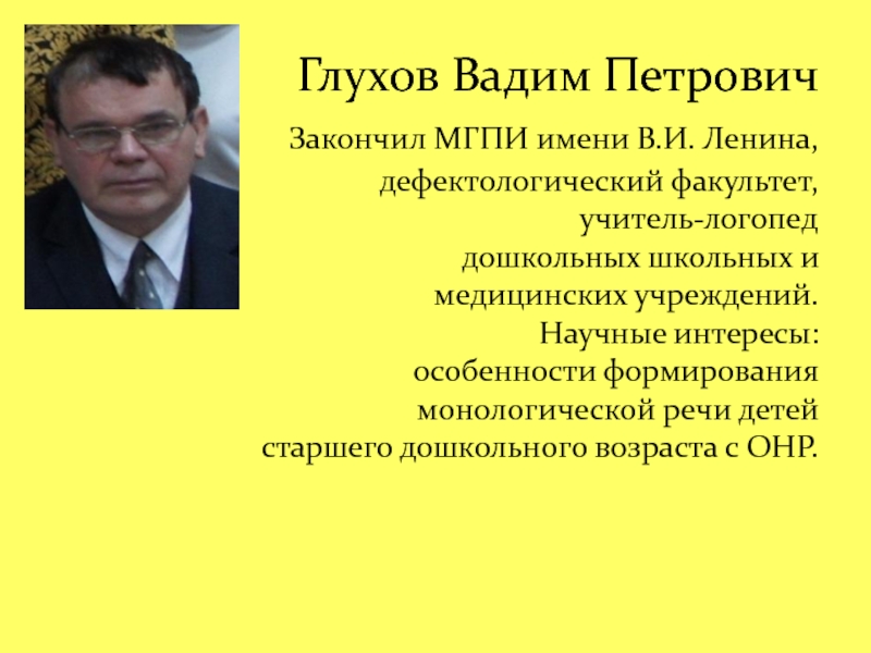 Закончил МГПИ имени В.И. Ленина, дефектологический факультет,