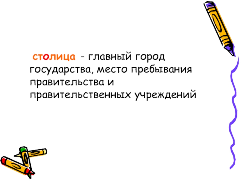столица - главный город государства, место пребывания правительства и правительственных учреждений