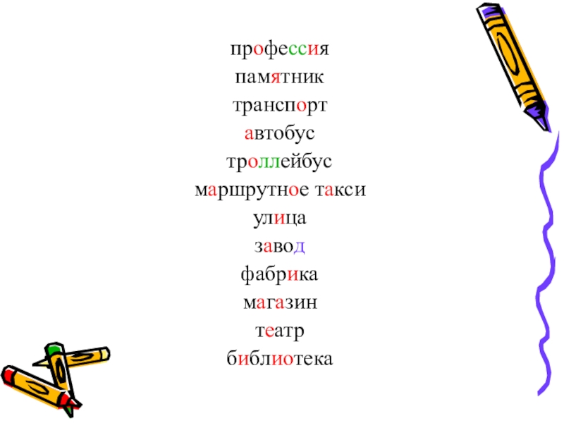 профессияпамятниктранспортавтобустроллейбусмаршрутное таксиулицазаводфабрикамагазинтеатрбиблиотека