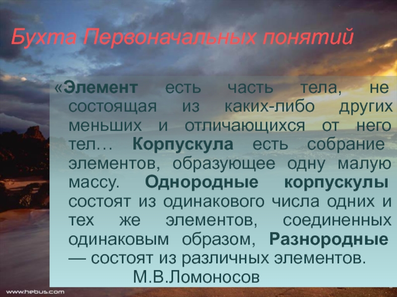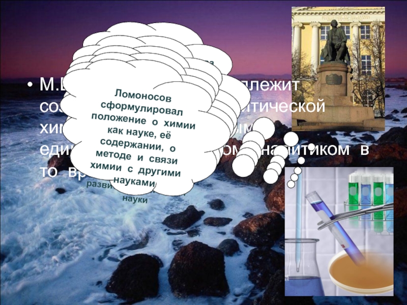 Ломоносов сформулировал положение о химии как науке, её содержании, о методе и связи химии с другими науками
