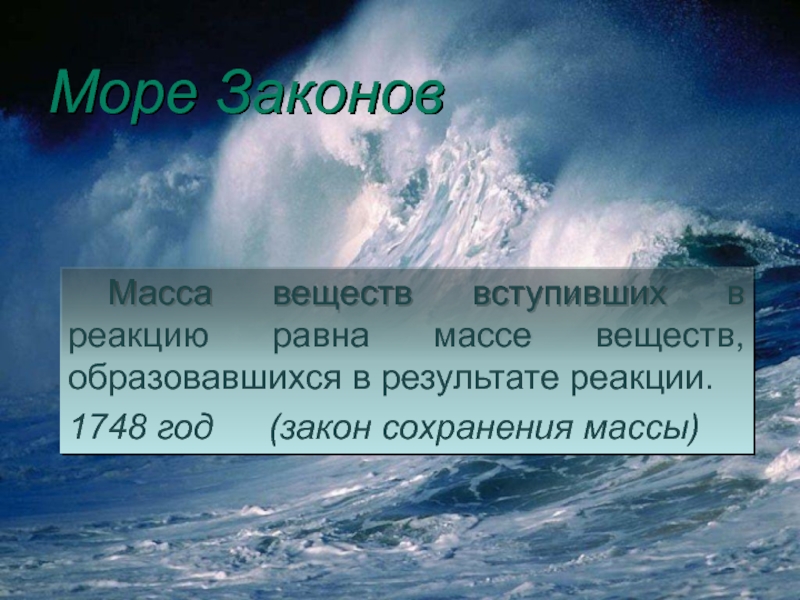 М.В.Ломоносов открыл закон сохранения массы веществ и высказал в общих чертах закон сохранения энергии