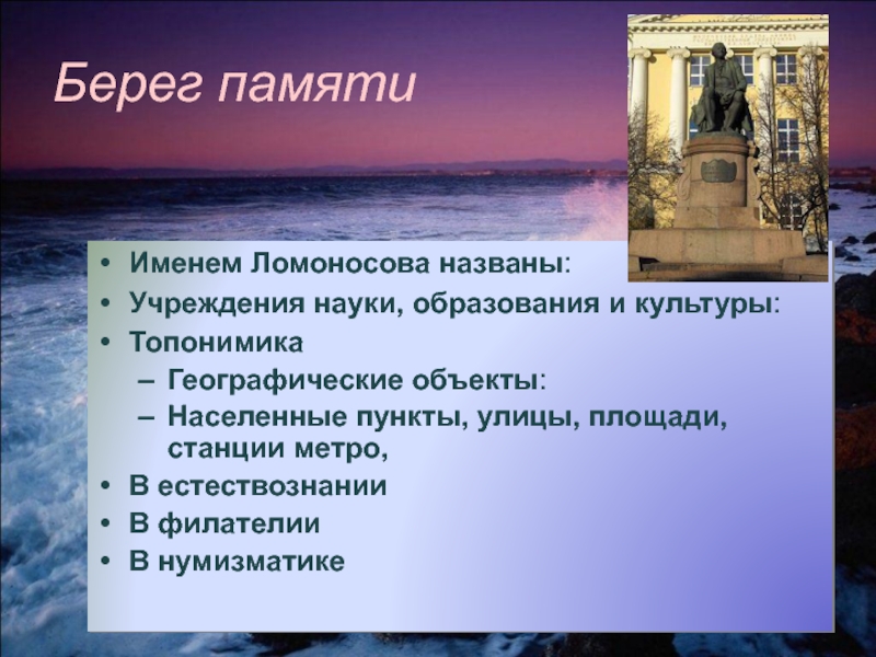 С именем Ломоносова связано развитие горнозаводского дела и металлургии.. Он научно обосновал процессы, связанные с выплавкой металлов и добыванием руд