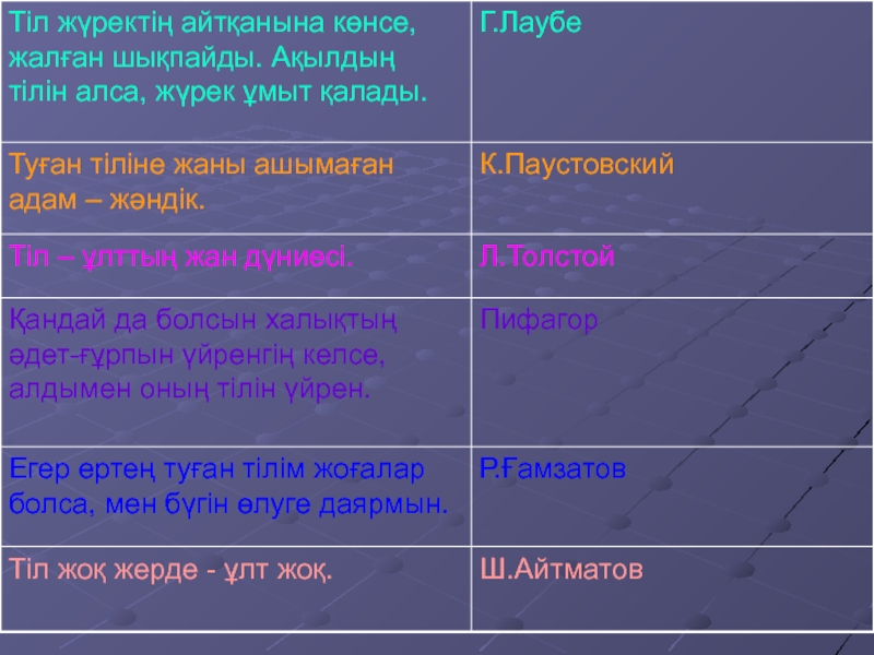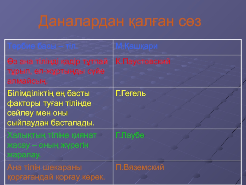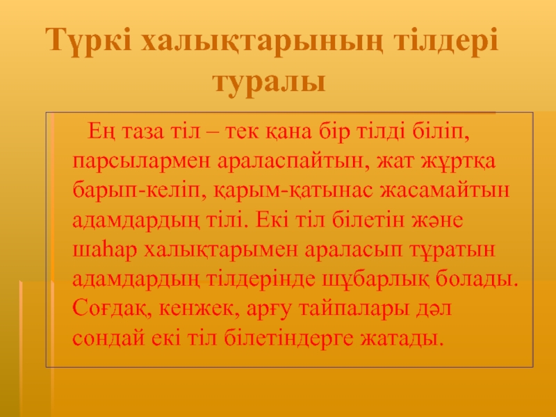 Ең таза тіл – тек қана бір тілді біліп, парсылармен араласпайтын, жат жұртқа барып-келіп, қарым-қатынас жасамайтын адамдардың тілі. Екі тіл білетін және шаһар халықтарымен араласып тұратын адамдардың тілдерінде шұбарлық болады. Соғдақ, кенжек, арғу тайпалары дәл сондай екі тіл білетіндерге жатады.