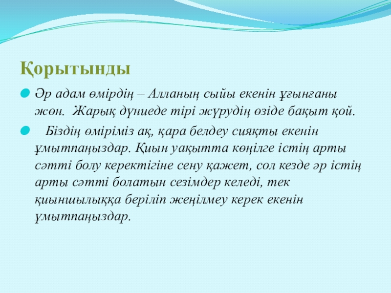 Әр адам өмірдің – Алланың сыйы екенін ұғынғаны жөн. Жарық дүниеде