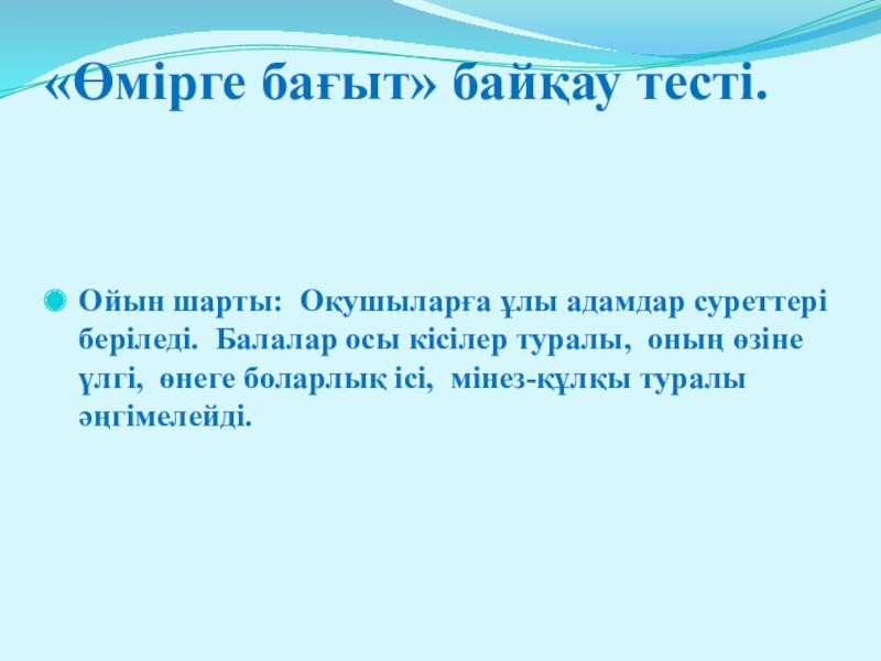 Слайд 4«Өмірге бағыт» байқау тесті.