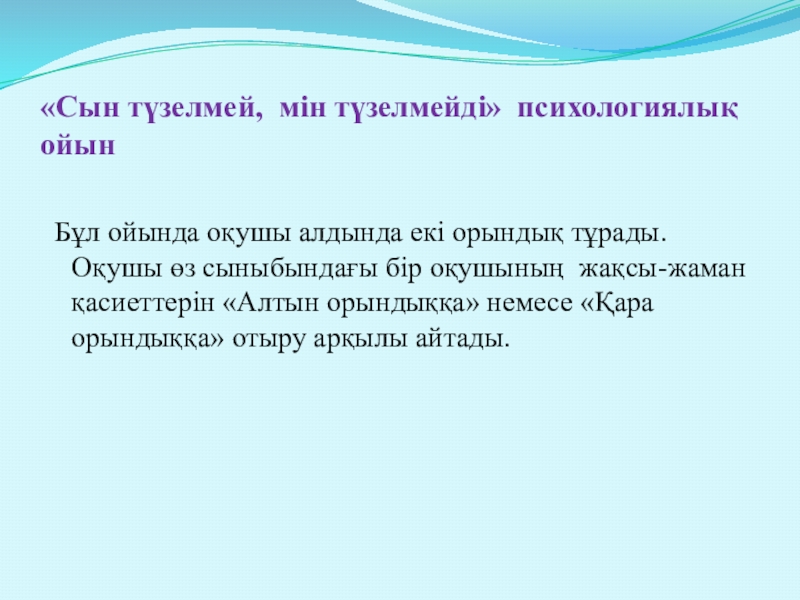 Слайд 5«Сын түзелмей, мін түзелмейді» психологиялық ойын