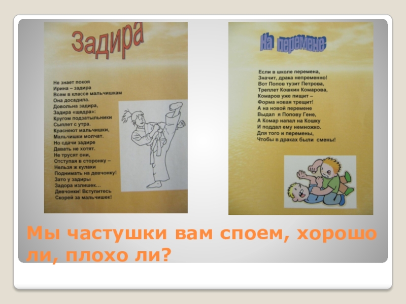 Слайд 15Мы частушки вам споем, хорошо ли, плохо ли?