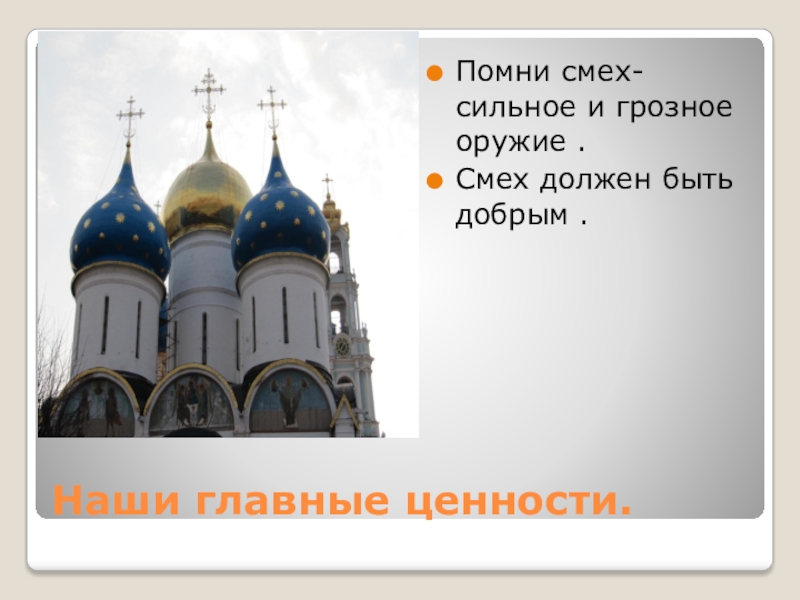 Наши главные ценности.Помни смех- сильное и грозное оружие .Смех должен быть добрым .