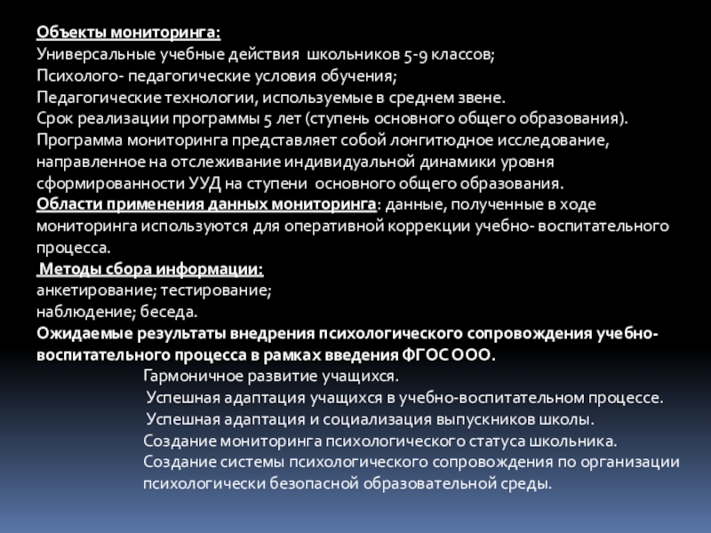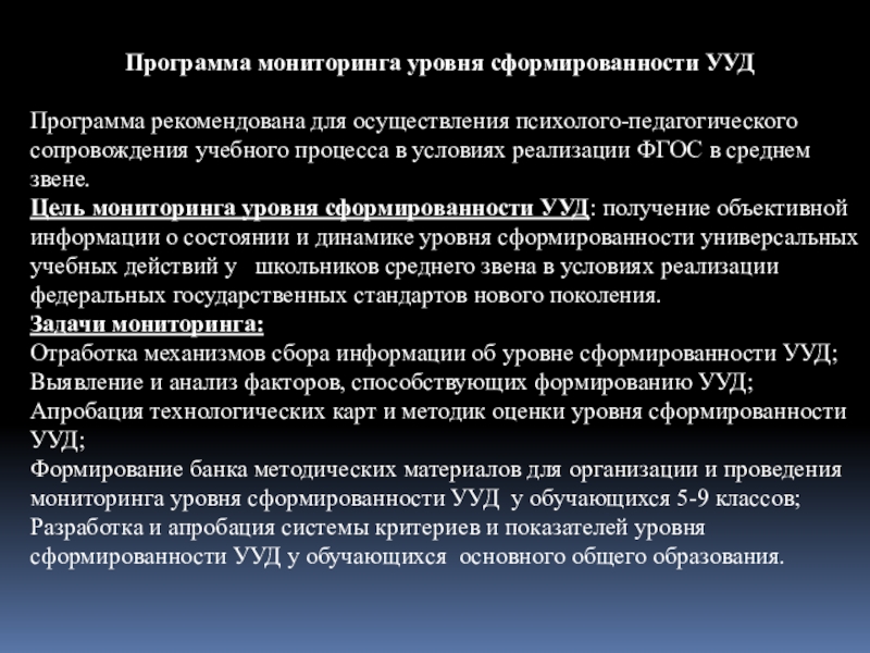 Программа мониторинга уровня сформированности УУД