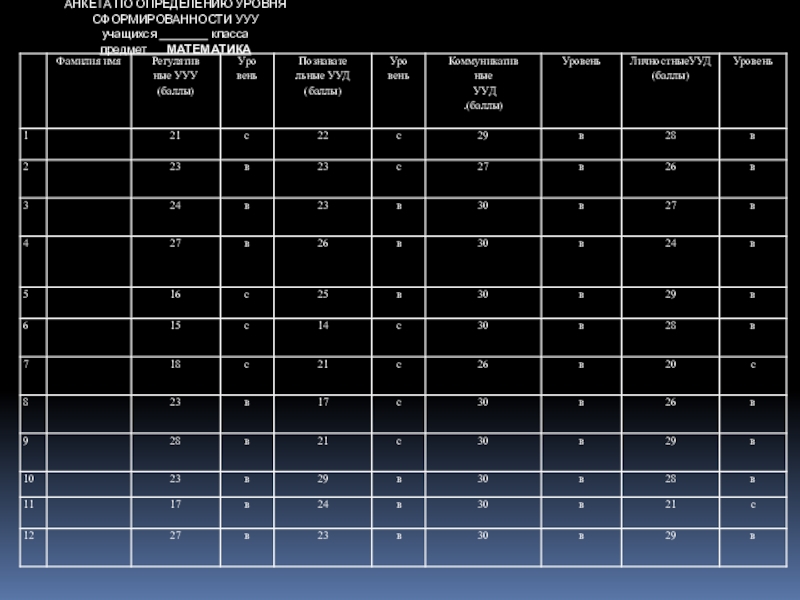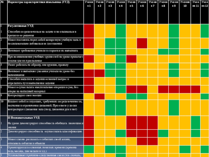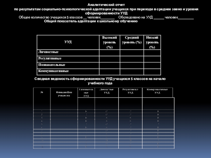 Сводная ведомость сформированности УУД учащихся 5 классов на начало учебного года