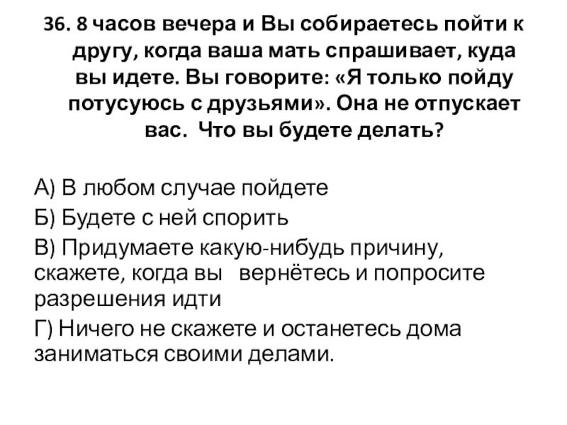 Г) Ничего не скажете и останетесь дома заниматься своими делами.