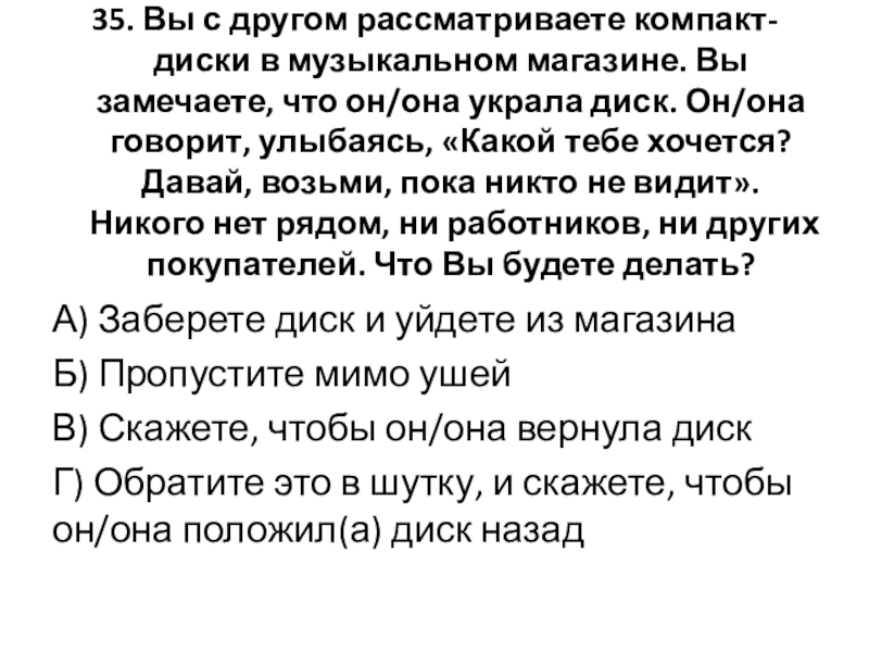 Г) Обратите это в шутку, и скажете, чтобы он/она положил(а) диск назад