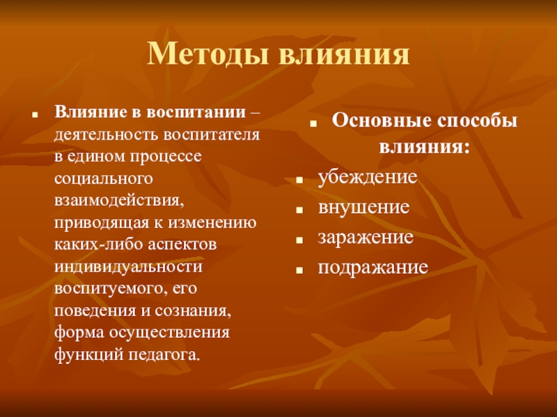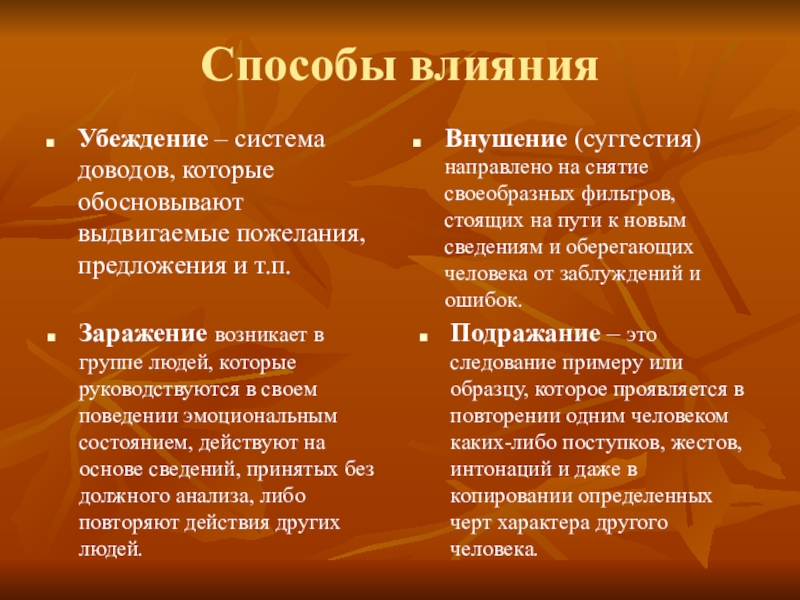 Основные способы влияния: