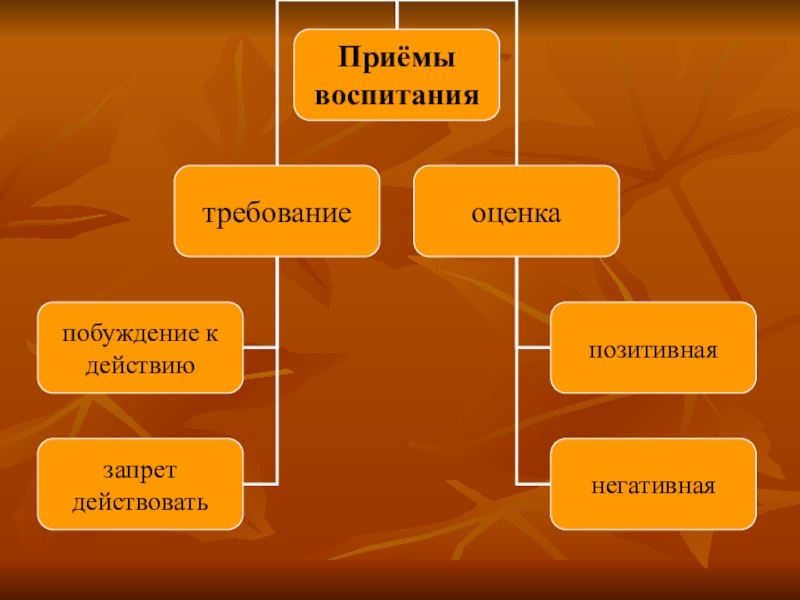 Приёмы воспитания – это индивидуальное, педагогически оформленное действие педагога, направленное на сознание, чувства, поведение ребенка, используемое для решения педагогических задач.