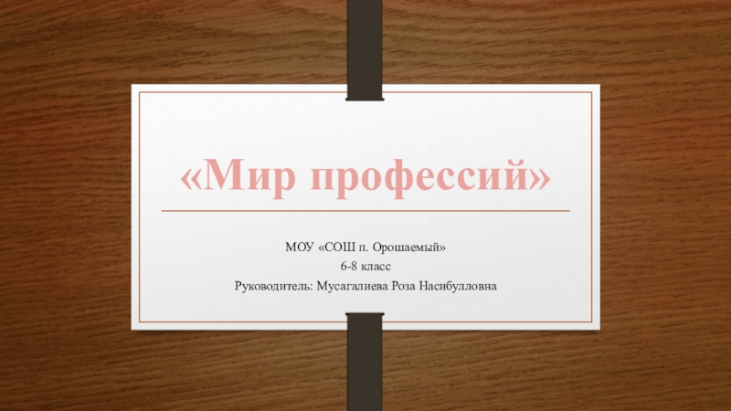 «Мир профессий» МОУ «СОШ п. Орошаемый» 6-8 классРуководитель: Мусагалиева Роза Насибулловна