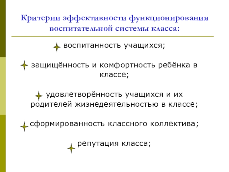 Слайд 11Критерии эффективности функционирования воспитательной системы класса: