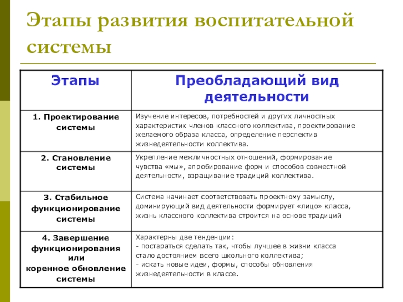 Слайд 9Этапы развития воспитательной системы