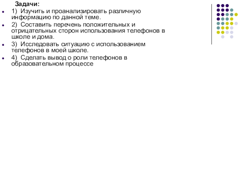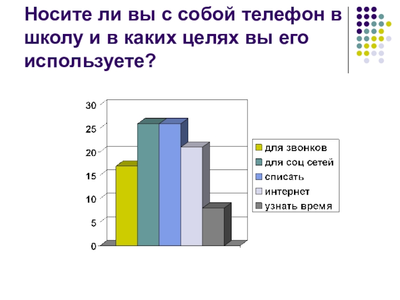 3) Исследовать ситуацию с использованием телефонов в моей школе.