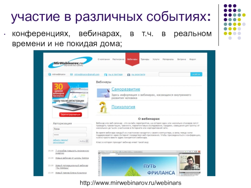 конференциях, вебинарах, в т.ч. в реальном времени и