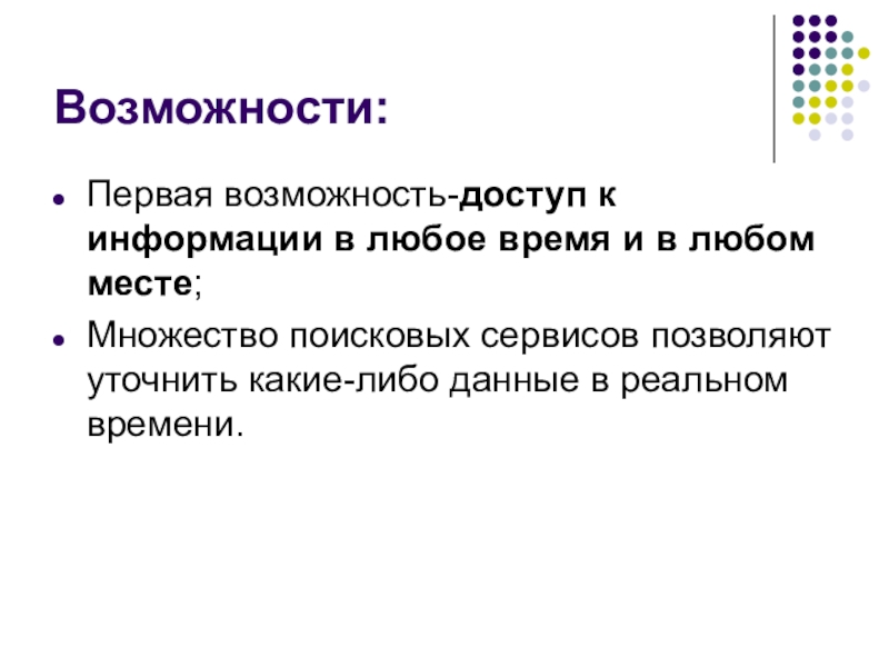 Первая возможность-доступ к информации в любое время и в любом месте;