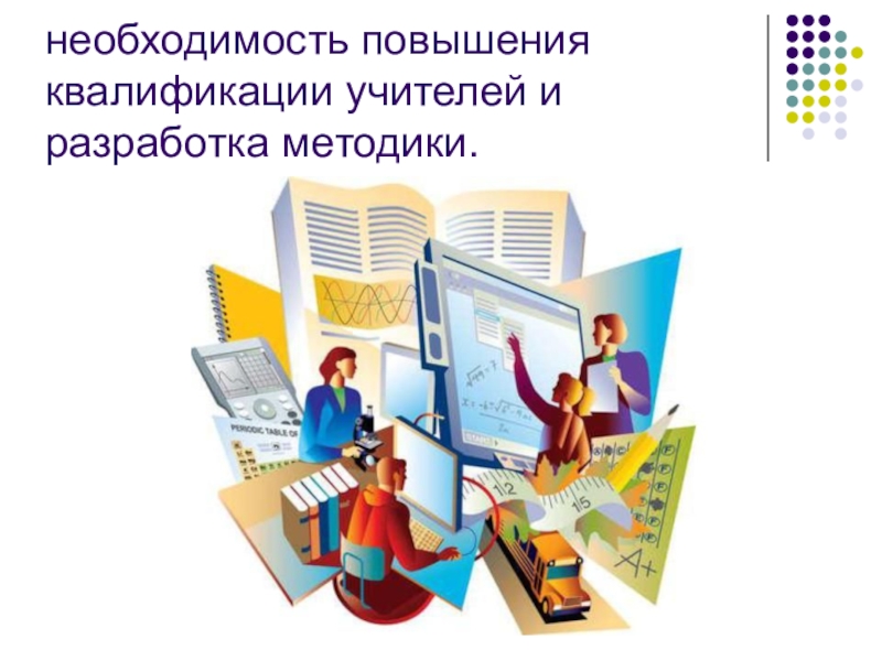 Слайд 16необходимость повышения квалификации учителей и разработка методики.