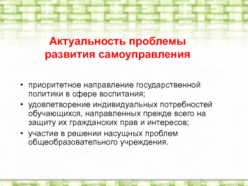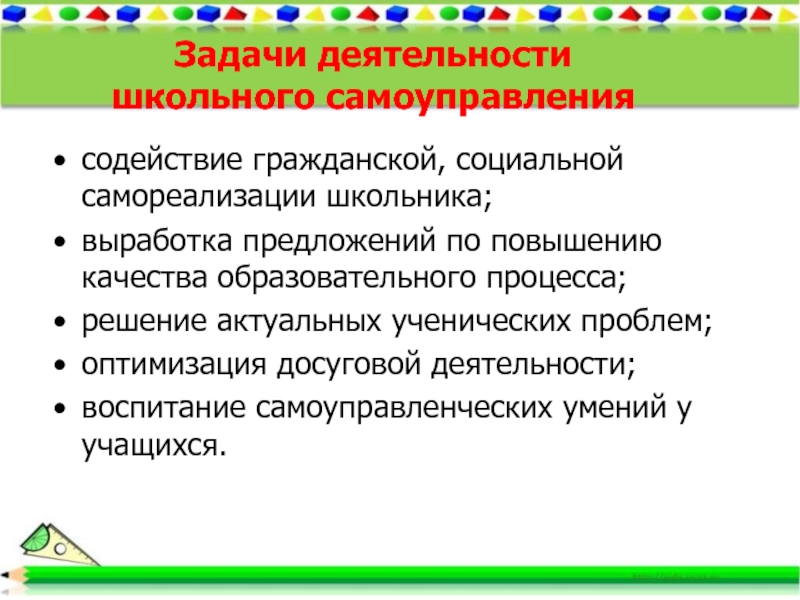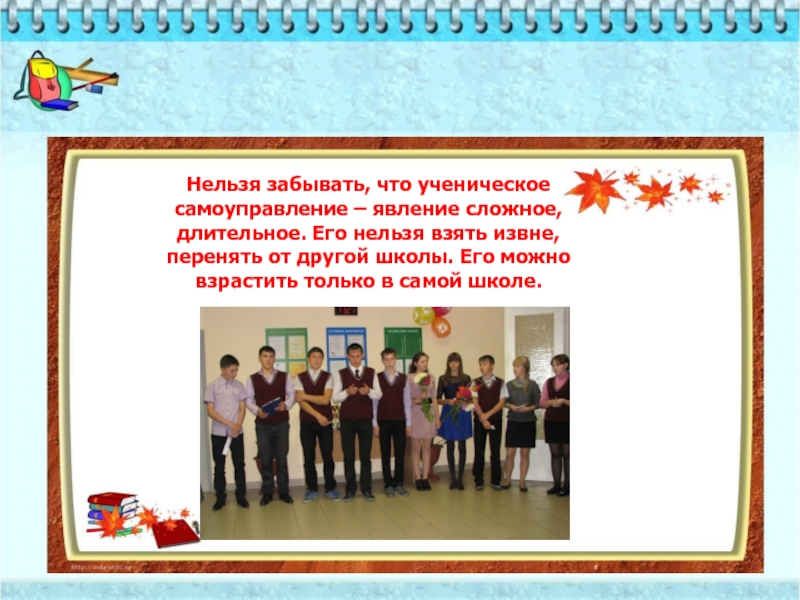 Нельзя забывать, что ученическое самоуправление – явление сложное, длительное. Его нельзя