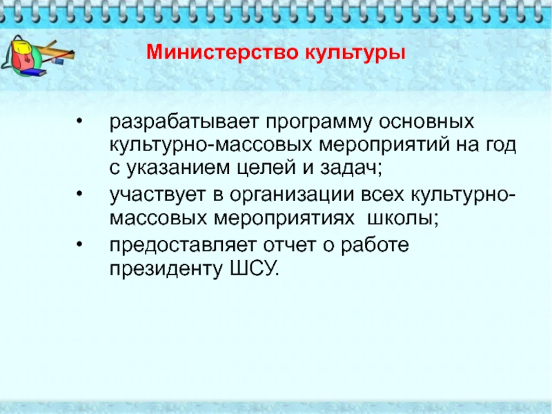 разрабатывает программу основных культурно-массовых мероприятий на год с указанием целей