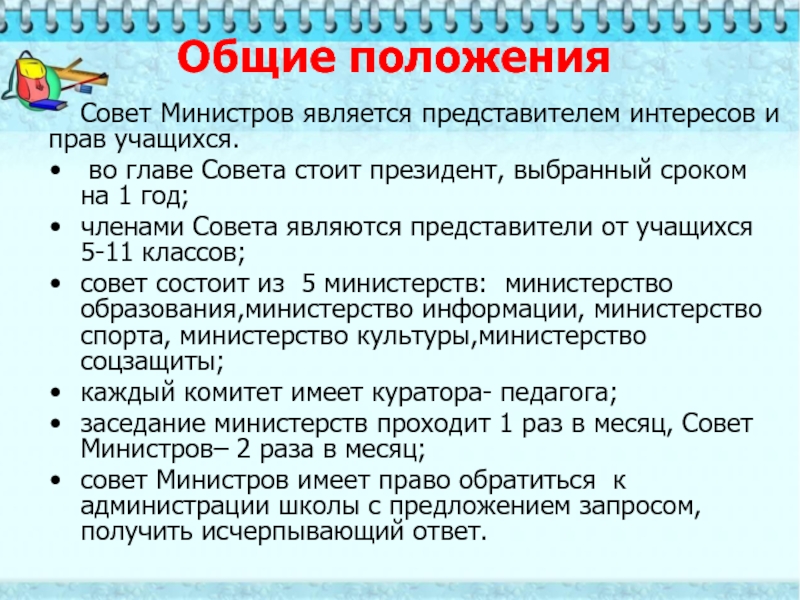 совет Министров имеет право обратиться к администрации школы с предложением запросом, получить исчерпывающий ответ.