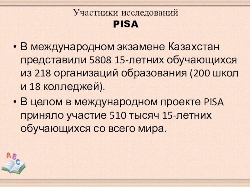 Слайд 5 Казахстан принимает участие в двух крупных международных исследованиях: