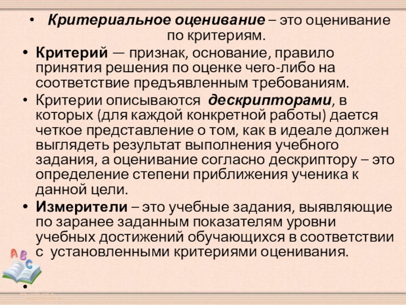 процессе обучения учитель всегда должен обращать внимание учащихся на критерии оценивания.