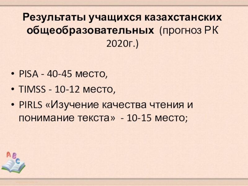 Слайд 15Результаты учащихся казахстанских общеобразовательных (прогноз РК 2020г.)
