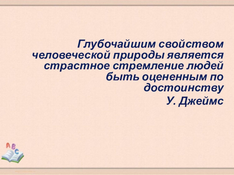 Глубочайшим свойством человеческой природы является страстное стремление людей быть оцененным по